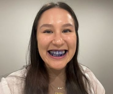 La corrección de color deriva de la acción que tiene el color púrpura sobre el amarillo al ser contrastes opuestos. Aplicar el púrpura en los dientes neutralizará los matices amarillos y los eliminará, revelando una sonrisa blanca y renovada.